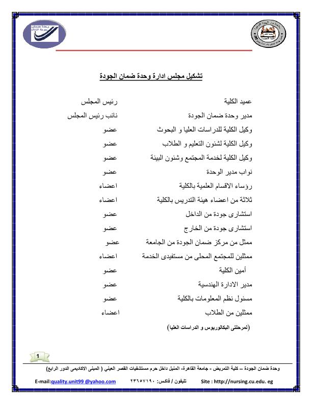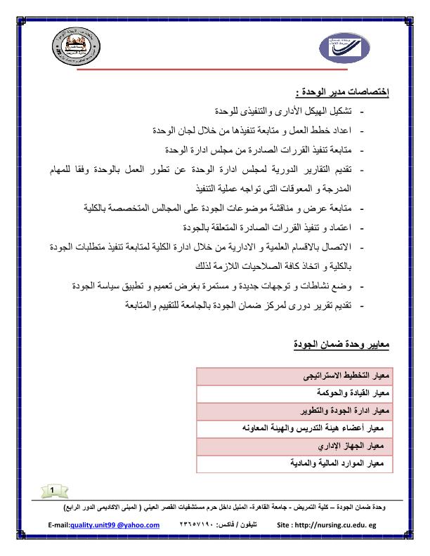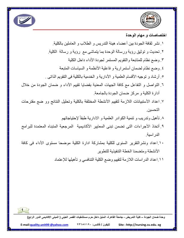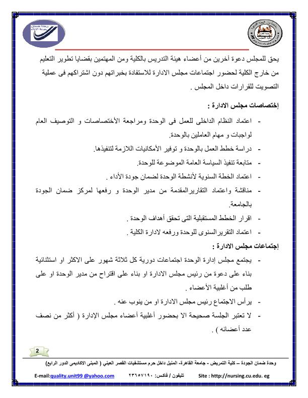 إنجازات وإسهامات وإختصاصات الوحدة تشكيل مجلس الإدارة للوحدة إختصاصات مدير الوحدة الجدول الزمنى للتقويم لأعمال الجودة داخل الكلية مسار تسليم التوصيف وتقرير المقررات 2015-12-14 admin
