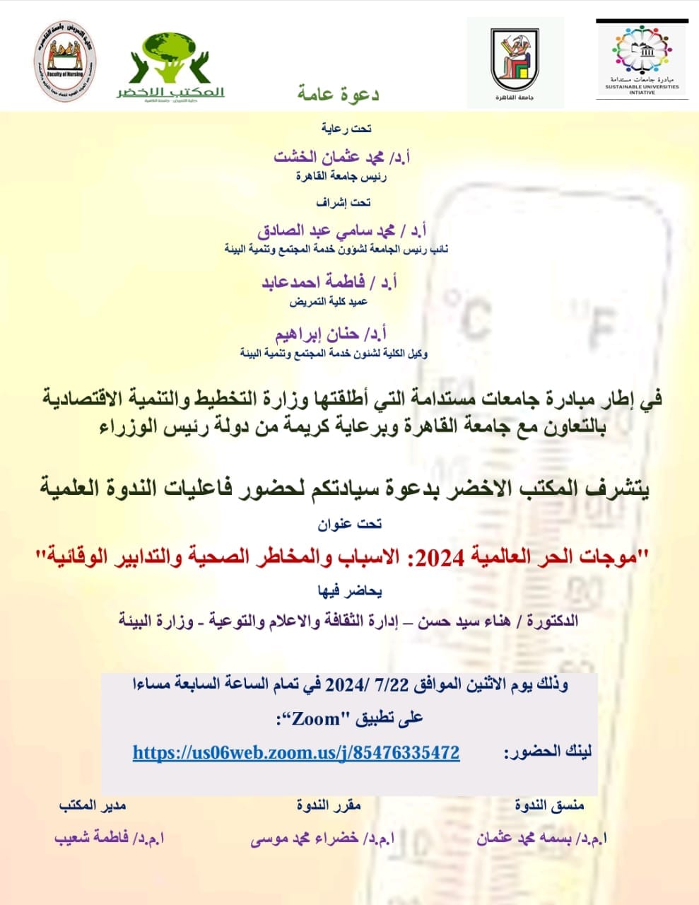 في إطار مبادرة جامعات مستدامة التي أطلقتها وزارة التخطيط والتنمية الاقتصادية بالتعاون مع جامعة القاهرة وبرعاية كريمة من دولة رئيس الوزراء