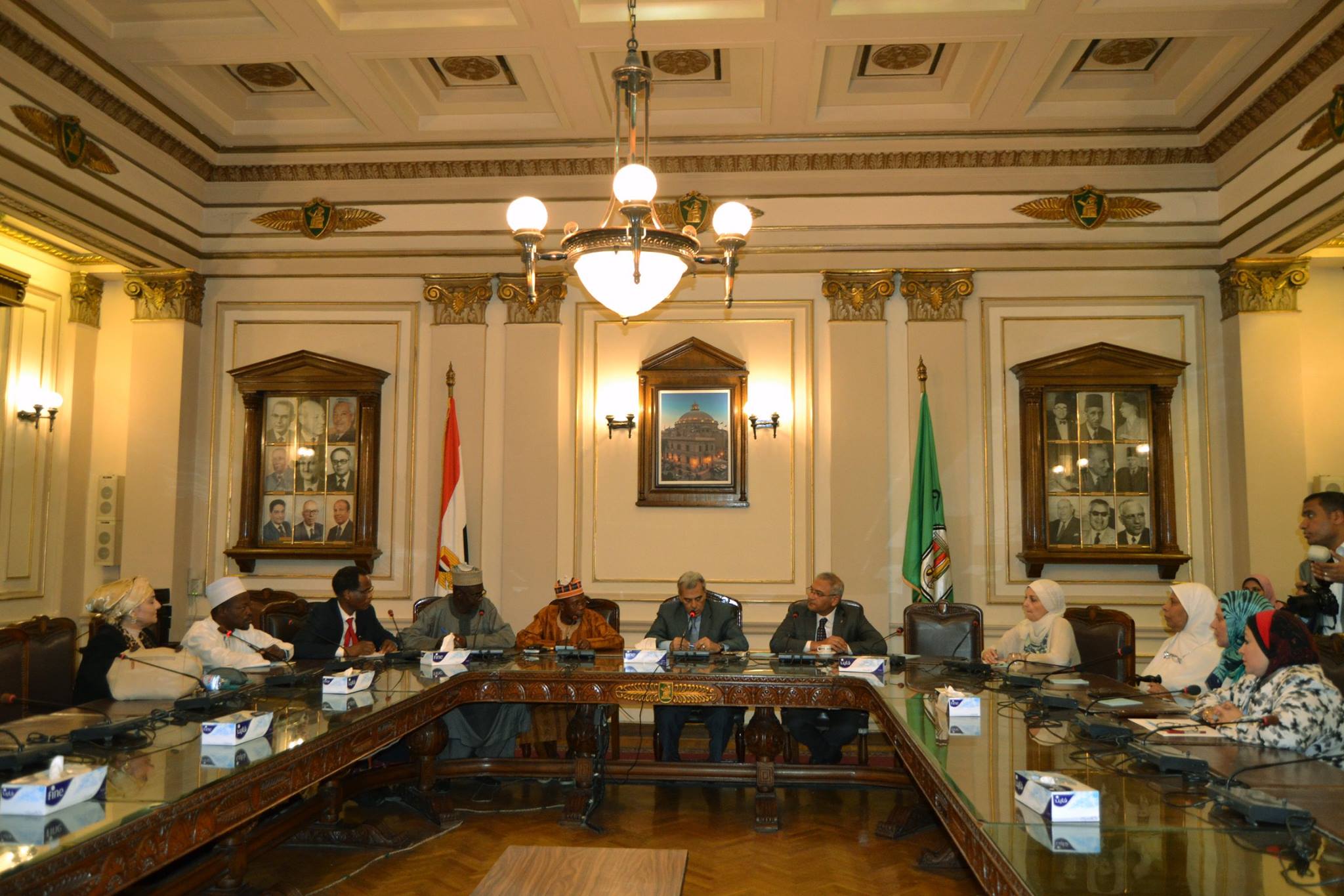 و ذلك بقاعة الإجتماعات بمبنى رئيس جامعة القاهرة بعد القيام بجولة في كلية التمريض
