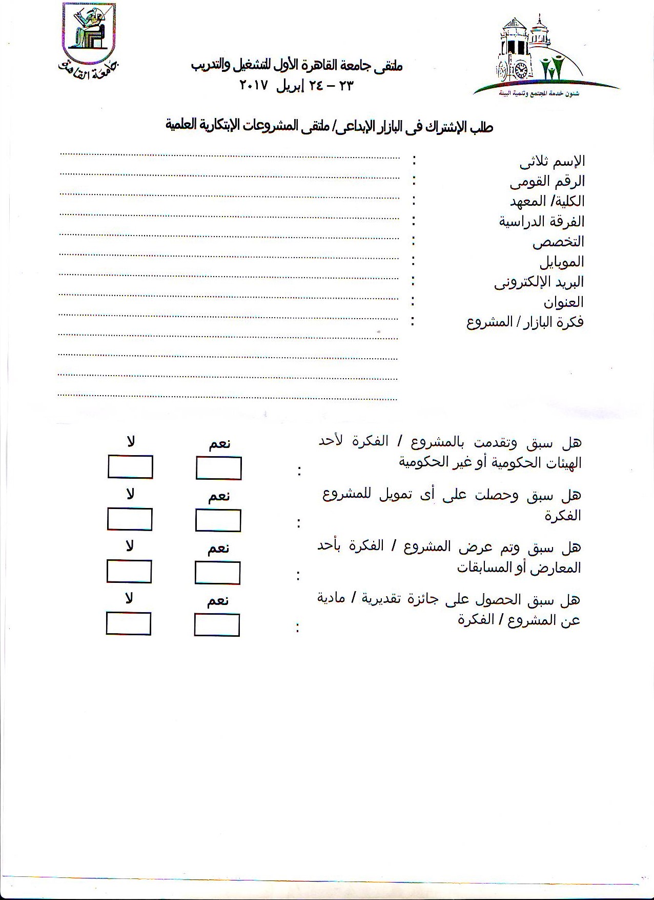 ملحوظة : عند ملئ البيانات طلب الإشتراك فى البازار الإبداعي – ملتقى المشروعات الإبتكارية العلمية