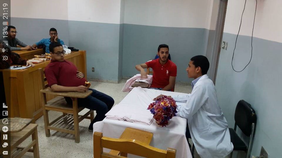حيث قام الطلاب بعرض مسرحية مدتها لا تتعدى العشر دقائق لإبراز اهمية ممارسة السلوك الصحى لمرضى السكر والسمنة المفرطة كأمثلة تطبيقية لنظرية الإنتقال