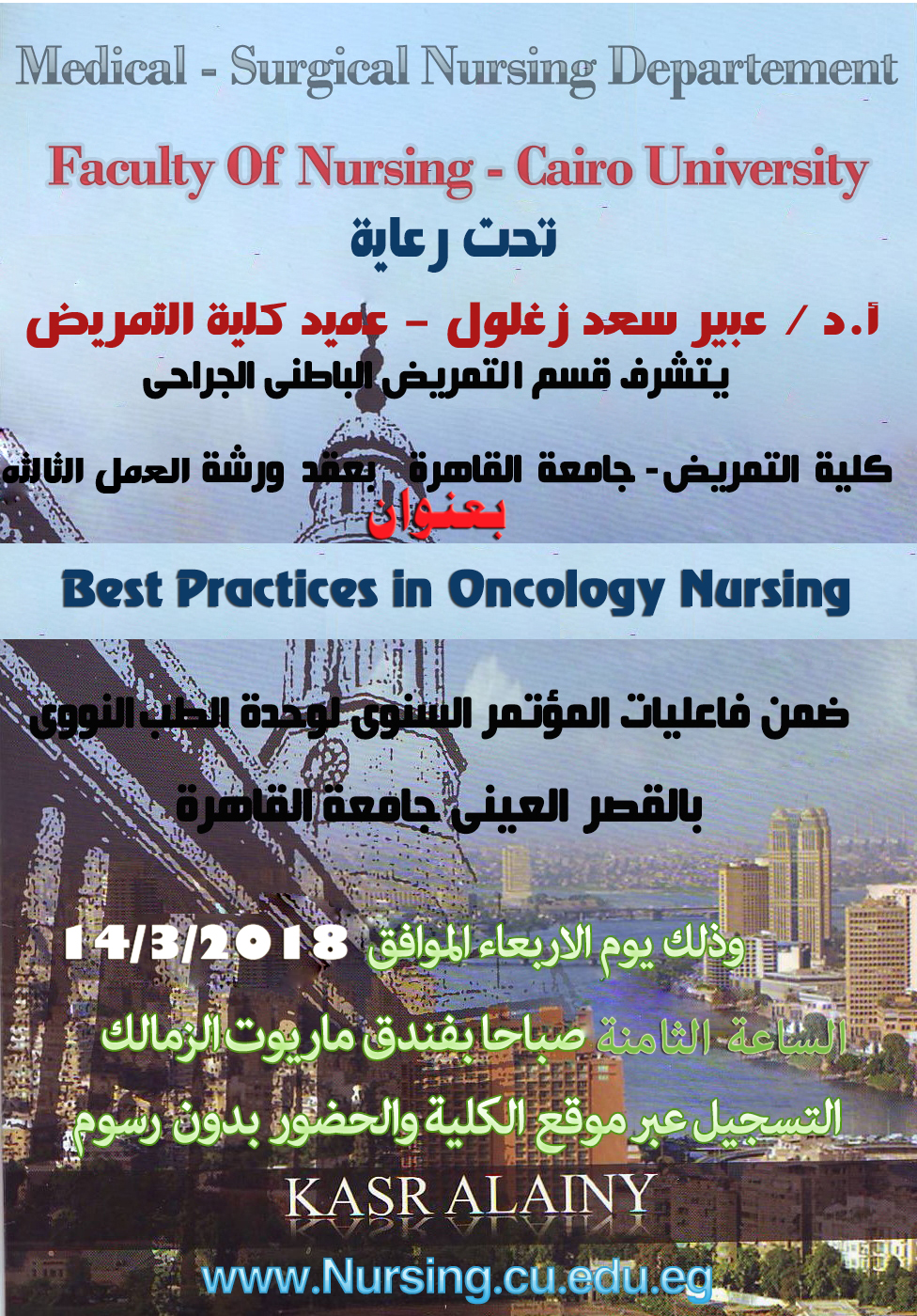 يتشرف قسم التمريض الباطني الجراحى بعقد ورشة عمل الثالثة بعنوان
