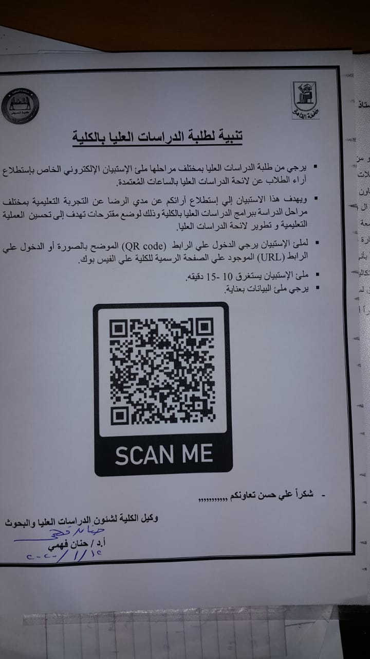 استبيان لإستطلاع آراء الطلاب عن لائحة الدراسات العليا بالساعات المُعتمدة
