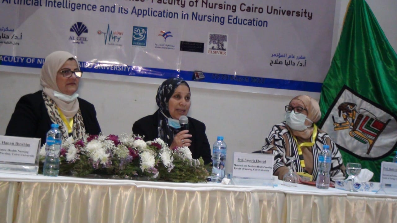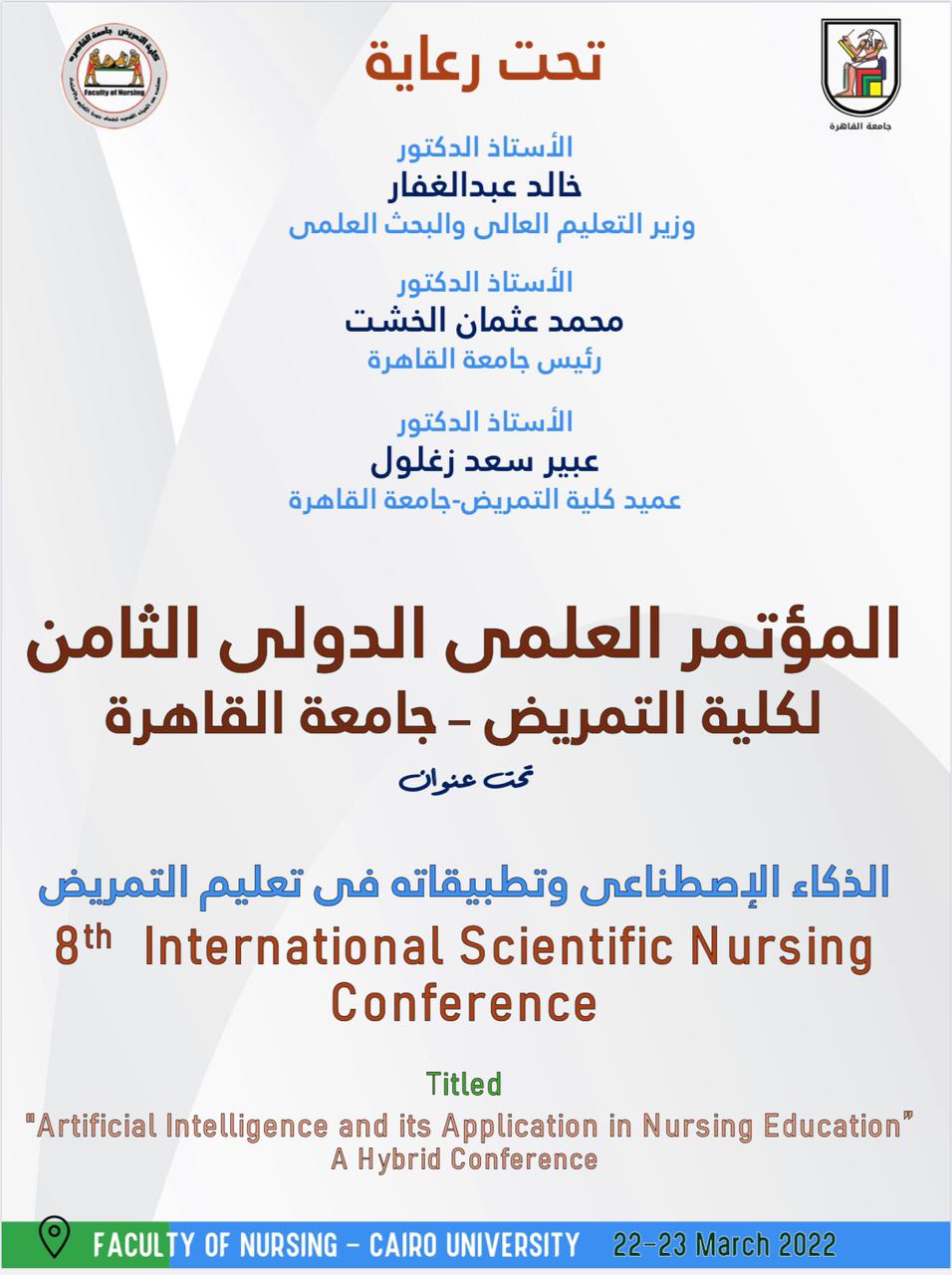 للتمريض و المعهد الفني الصحي بامبابه و الساده اعضاء هئيه التدريس و الهئيه المعاونه بالكليه و الجامعات الاخري و منسوبي المؤسئسات الصحيه الحكوميه و الخاصه. و قد تناول المؤتمر العديد من الاوراق العلميه عن تطبيقات الذكاء الاصطناعي في تعليم التمريض و المخاطر و التحديات للذكاء الاصطناعي و ممارسته و استخدام الموبيل في تعليم التمريض و الجديد في التعليم الاكلينكي للتمريض و و القانون ااجديد الصادر للجان اخلاقيات البحث العلمي و الابحاث الاكليكنيه و ابحاث و مشروعات طلابيه و ايضا كان علي هامش المؤتمر اربع ورش عمل النشر الدولي و الممارسات الغير صحيحه بواسطه الشبكه المصريه للجان اخلاقيات البحث العلمي ، بنوك الاسئله و التقيم و القياس و تمريض المناظير بالاضافه الي ملتقي توظيفي.