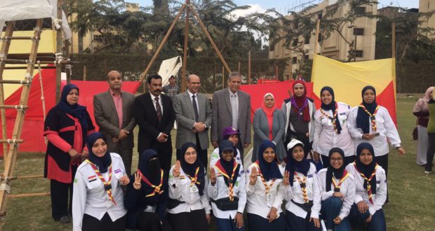 وذلك لحصولهن على المركز الخامس وتصعيدهم للمستوى الثانى على مستوى الجامعة جانب من فريق الجوالة