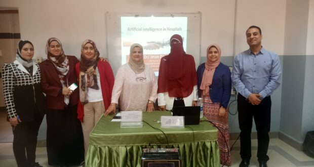 تحت رعايه ا.د محمد عثمان الخشت رئيس الجامعه واشراف ا.د محمد سامى عبد الصادق نائب رئيس الجامعه لشئون خدمه المجتمع وتنميه البيئه ا.د فاطمه عابد عميد الكليه ا.د حنان ابراهيم وكيل الكليه لشؤون خدمه المجتمع وتنميه البيئه تحت عنوان “دور التمريض فى تطبيق الذكاء الاصطناعي بالمستشفيات’والتى حاضر فيها د.ايمان ديابمدير مكتب التطوير بمستشفيات جامعه القاهرة وذلك يوم الاحد الموافق ٥/٢١الساعه ...
