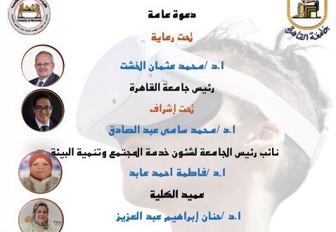 تحت إشرافا.د / محمد سامى عبد الصادقنائب رئيس الجامعة لشئون خدمة المجتمع وتنمية البيئةا.د /فاطمة أحمد عابدعميد الكليةاد حنان إبراهيم عبد العزيزوكيل الكلية لشئون خدمة المجتمع وتنمية البيئةتتشرف كلية التمريض – جامعة القاهرةبدعوة سيادتكم لحضور المؤتمر العلمي السنوي التاسع عشر للكليةتحت عنوان“Future of Nursing in the Light of Digitalization and ArtificialIntelligence”مستقبل التمريض في ضوء التكنولوجيا الرقمية والذكاء الإصطناعيوذلك يوم الأربعاء ...